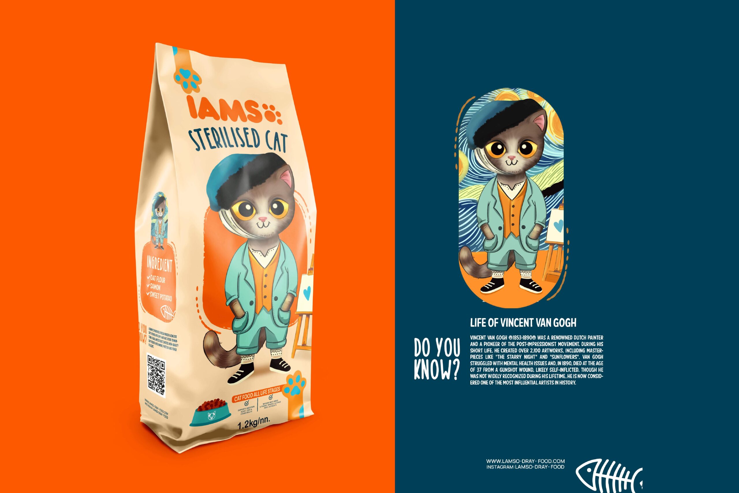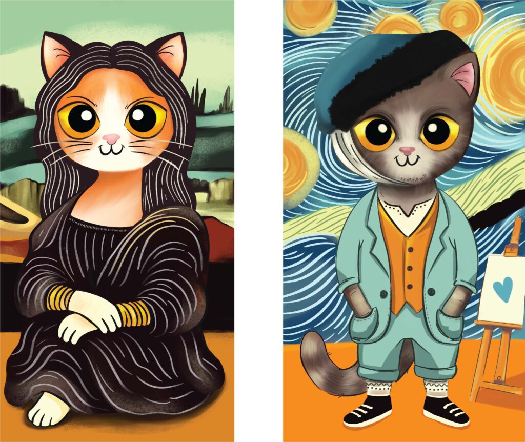 For this packaging design, I drew inspiration from iconic characters in cat-themed art and storytelling. Beyond visual appeal, the goal was to introduce great artists and their works to people who might not be familiar with them. Each package includes a short biography of the artist or artwork, turning the packaging into an educational and collectible piece — something people would want to keep rather than throw away.