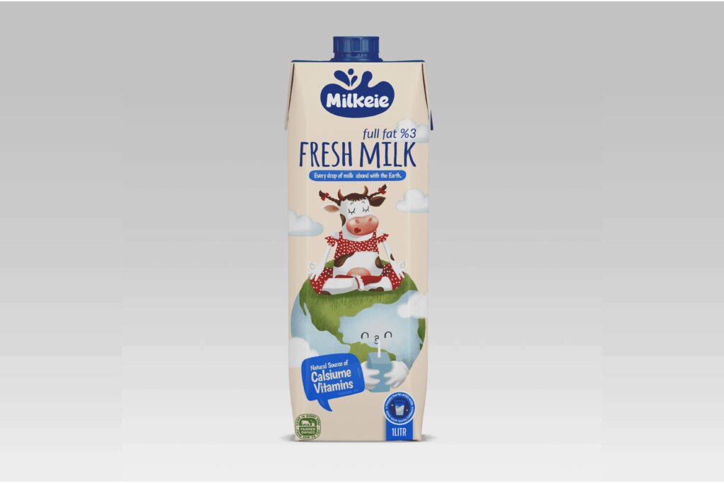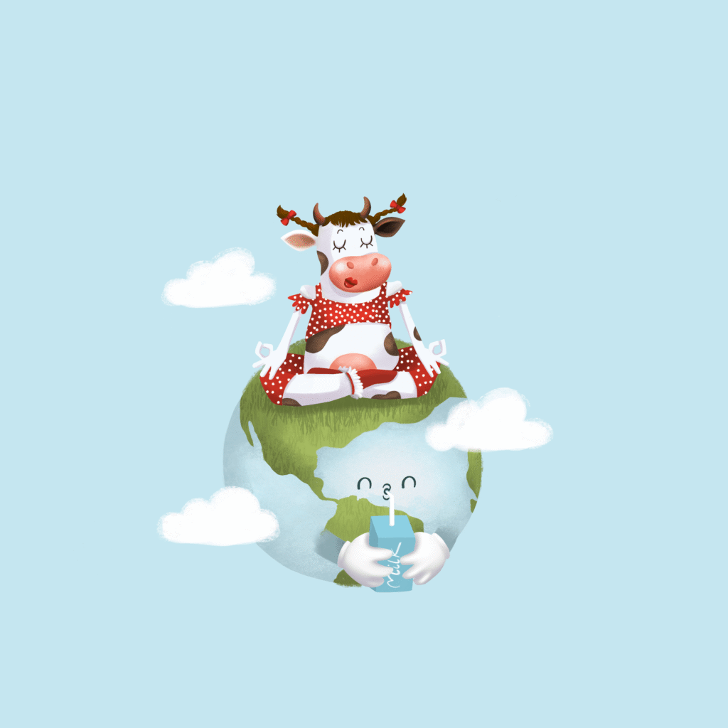 I created the packaging illustration for this milk brand, combining playful design with a strong message of environmental care. The artwork highlights the company’s commitment to sustainable production and respect for the Earth, showing that even everyday milk can be made with thoughtfulness for the planet.